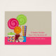 A set of 100 recipe cards (chubby business cards) featuring an illustration of a jar of gumballs, three lollipops, stick candy, a piece of chocolate, and a cupcake. Personalise with your name. Write your recipe on the back.