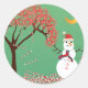 Candycane Tree with Snowman Classic Round Sticker