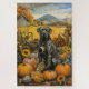 Celebrate the beauty of fall with this vibrant painting of a dog sitting beside a bountiful Thanksgiving harvest. The rich autumn colours of pumpkins, sunflowers, and rustic farmhouse scenery create a warm and inviting atmosphere, perfect for any dog lover's seasonal décor.