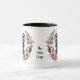 A pretty autumn wreath in tones of cinnamon brown, tan, and cream surround the watercolor image of a beautiful black Cane Corso Dog. The image is printed twice on the mug, with your custom text between them.