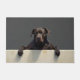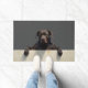 The deep slate gray background adds a bold and modern touch, making it perfect for stylish entryways. Designed with extra space at the top and bottom, it allows easy personalization with names, welcome messages, or custom text—ideal for unique dog-themed doormats and thoughtful gifts.