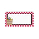 This label features a red and white chequered border and a big basket of vegetables in the bottom left corner. Perfect for a canning label or use it as an address label or a gift tag. Click on the Customise It button to add your own text.