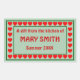 Rectangular stickers come in sheets of four, and are fully customisable. Change the text to anything you like. This sticker features a bright border of red hearts on a green background, and a large customisable text area. Suitable for tomato sauce, pasta sauce, marinara sauce, canning, jarring, preserves, pesto, salsa, wherever your kitchen genius takes you! Create labels to make beautiful gifts from your kitchen.