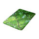 Bath mat in a pattern of leafy green tree branches silhouetted against a blue summer sky - digitally enhanced photography