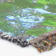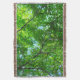 Throw blanket in a pattern of leafy green tree branches silhouetted against a blue summer sky - digitally enhanced photography