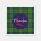 Paper napkins, with the colourful Scottish clan Cranstoun / Cranston tartan plaid pattern. A blue round disc, in the centre, has a single letter monogram done in red, and the sir name done in white, and are ready to personalise. Great for for any gathering.