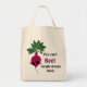 Take this bag with you to the farmer's market and you will make lots of friends. A fun play on words, this little beet will make sure you think twice before buying those veggies from out of the country. For the vegetable gardener to the health nut, this design makes a great gift! Original design and artwork by Rebecca of Night Owl's Menagerie, 2010.