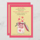 This hand-drawn mason jar illustration with an open lid and escaping hearts has a framed, yellow polka dot background. It's a charming invitation to a wedding rehearsal dinner party.