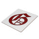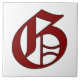 The letter G in Canterbury style done in red on a white background with a slight shadow to give it a three dimensional effect.