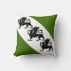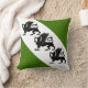 "Vert, on a bend argent three gryphons passant sable." Populace badge for the Canton of Gryphonwald in the Society for Creative Anachronism. Back of pillow is a Renaissance pattern in coordinating colours.