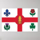The flag’s design centres on a bold red cross dividing a white field into four equal quadrants, each adorned with a meaningful floral emblem: a blue fleur-de-lis for the French, a red rose for the English, a green shamrock for the Irish, and a purple thistle for the Scottish. These traditional symbols pay homage to the founding peoples of the city and come together in a harmonious composition that reflects Montreal’s enduring values of diversity and solidarity.