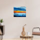 This 24"x20" canvas print features a beautiful sunset over the water with a striking blue theme. The original was painted in acrylics by Ohio artist David Pepper in April 2021. The paper is a premium canvas with a gloss finish.