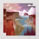 This gorgeous landscape design depicts a canyon leading into the ocean and sunset with various shades of red, crimson, beige, orange, and tan.
