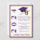 5" by 7" Graduation Invitation, Cap & Diploma theme, with "Class Year" in Purple & Gold. Back of invitation includes graduate name, Can be personalised with your own images, artwork, etc.