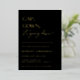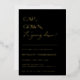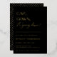 CAP, GOWN, it's going down! Gold Foil Contemporary graduation party invitation. Modern typography design on classic black colour backgrounds with faux gold geometric pattern backing.