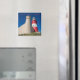 Fridge magnet with a colour image of the Cape Agulhas lighthouse, at the most southern point of South Africa, taken from a low angle against the blue sky.