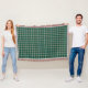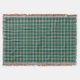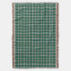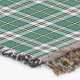 Throw blanket with the tartan for Cape Breton, Nova Scotia. Traditional plaid pattern in shades of green and yellow with a light steel grey blue and black highlights.
