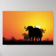A herd of Cape buffalo stand in silhouette against the fires of the setting sun. Computer art by Kathie Miller.