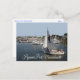 This Cape Cod travel postcard features an image of a sailboat in the beautiful Hyannis Port, Massachusetts.
