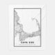 High-Resolution Map of Cape Cod, Massachusetts, United States.