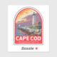 Cape Cod retro vector travel design in an emblem style. It's the site of quaint villages, seafood shacks, lighthouses, ponds and bay and ocean beaches.