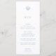 CAPE COD Modern Minimalist, coastal blue, wedding menu. Features, light coastal blue typography and scallop seashell illustration detail. Fonts and colours can be customised by using the design tool feature.