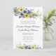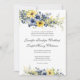 Celebrate the season of love with our enchanting Summer Wedding Invitation, adorned with a breathtaking floral design that captures the essence of sunny bliss. This exquisite invitation is a symphony of colours, featuring vibrant yellow sunflowers, calming grey and blue forget-me-nots, delicate white cosmos, and the timeless elegance of eucalyptus, dusty miller, and baby's breath. Customise our template with your information, i.e. names, dates, and venue
