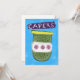 A cute and colourful jar of capers over a blue textured background with flower accents and handdrawn text.