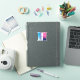 A bold capital letter monogram in a beautiful gradient of pink, cyan, dark blue and white. Copyright 2019. Terri Jones. All Rights Reserved.