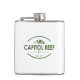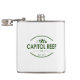 The flask itself is fine. It’s a cheap flask, obviously bought in bulk, however am prepared to overlook that. Given that it is a personalized item, I would have liked to have seen gift boxing instead of the generic packaging. Terrible printing, and/or quality. It’s a cheap, tacky vinyl. It is not cut straight and is also applied in a way that it is overhanging the bottom, causing the glue to catch on items and it will eventually roll and tear, damaging the wrap.
