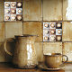 Cute image of Cappuccino coffee cups on different colour smaller tiles. Create a cute coffee lovers theme in your kitchen with this embossed look ceramic tile. THIS IS A PRINTED IMAGE