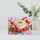 Cappuccino with crema, cinnamon and strawberries holiday postcard