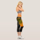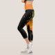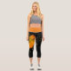 Orange and black Capri Leggings with a large leaf and small yellow flowers.