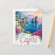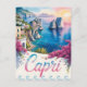 This enchanting watercolor postcard captures the serene beauty of Capri, Italy. The delicate brushwork highlights the island’s iconic cliffs, vibrant turquoise waters, and lush Mediterranean greenery. Perfect for admirers of Italian island charm and watercolor artistry, this piece brings a touch of Capri’s timeless allure to your collection.