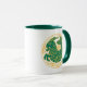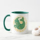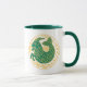 Capricorn sign of the zodiac in green and yellow on a two-tone coffee mug.