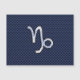 A silver chrome like Capricorn zodiac symbol on a navy blue carbon fibre style design texture print background. A modern urban racy design for a great custom birthday gift idea.