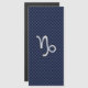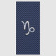 A silver chrome like Capricorn zodiac symbol on a navy blue carbon fibre style design texture print background. A modern urban racy design for a great custom birthday gift idea.
