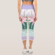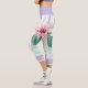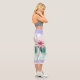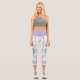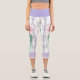 Capris leggings in a cacti design on a white background with cacti also in the background. Thanks to the Hungryjpeg for some of the elements in the design. The design also has light purple borders, and waist band.