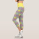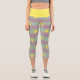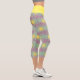 Capris in a medium green with bright yellow stars and purple swirls. The waist is yellow, but can be changed.