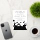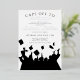 This elegant black and white graduation invitation features a modern design with a bold contrast of sleek black and crisp white tones. The front of the invitation showcases an exciting scene of graduates joyfully tossing their caps into the air, symbolising the thrill of achievement and new beginnings. Silver accents add a touch of sophistication, highlighting the celebratory moment while maintaining a timeless, refined aesthetic.