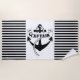 A beach towel for the captain of the boat! This beach towel features a nautical anchor and a banner and the word Captain in bold letters. The anchor is framed by a black and white striped pattern.
