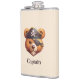 The flask itself is fine. It’s a cheap flask, obviously bought in bulk, however am prepared to overlook that. Given that it is a personalized item, I would have liked to have seen gift boxing instead of the generic packaging. Terrible printing, and/or quality. It’s a cheap, tacky vinyl. It is not cut straight and is also applied in a way that it is overhanging the bottom, causing the glue to catch on items and it will eventually roll and tear, damaging the wrap.