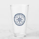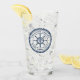 Glass tumbler featuring a dark blue, elegant ship's wheel and rope emblem with your custom captain's name and boat name.