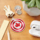 Be a Canadian hero with this metallic-style hero shield design stylised like the flag of Canada. The circular shield-like image has a scratched surface for a sturdy yet vintage look.