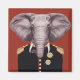 This design features a potrait of an elephant dressed in a military uniform.