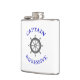 The flask itself is fine. It’s a cheap flask, obviously bought in bulk, however am prepared to overlook that. Given that it is a personalized item, I would have liked to have seen gift boxing instead of the generic packaging. Terrible printing, and/or quality. It’s a cheap, tacky vinyl. It is not cut straight and is also applied in a way that it is overhanging the bottom, causing the glue to catch on items and it will eventually roll and tear, damaging the wrap.