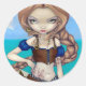 Captain Molly Morgan! Having just come back from the Caribbean myself (I spend a lot of my time playing pirate!), I was inspired to create this new series of Pirate Girls. Please meet the first - "Captain Molly Morgan" - very feisty, a little tough, and absolutely adorable - she stands on a beautiful Caribbean beach, a little upset about something! You may notice her traditional nautical tattoos - an octopus and an anchor. There are a lot of small details in this piece - a tiny Jolly Roger flask at her waist, a sword at her back, intricate outfit, hairstyle, etc. Very cute! My own original acrylic painting.