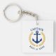 A nautical themed, two sided, keychain. On the front side is your personalised name, boat name or other text and the Captain rank or other title as desired. The front side also features a custom boat anchor with gold style laurel leaves design. The back side features your personal photo or boat picture. This keyring makes a great unique gift for any occasion.