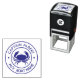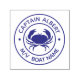 Captain with your name nautical crab logo self inking stamp. Classic round emblem with your name and boat name fields in block text and with crab at centre.