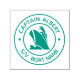 Captain with your name ship self inking stamp. Classic round emblem with your name and boat name fields in block text and with ship at centre.